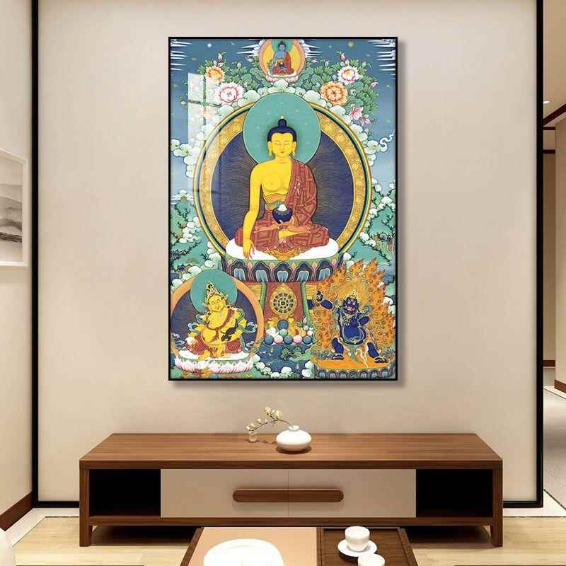 藏式 饰画唐卡挂画黄色财神客厅中殿镇屋佛堂壁画 白度母入口大厅装