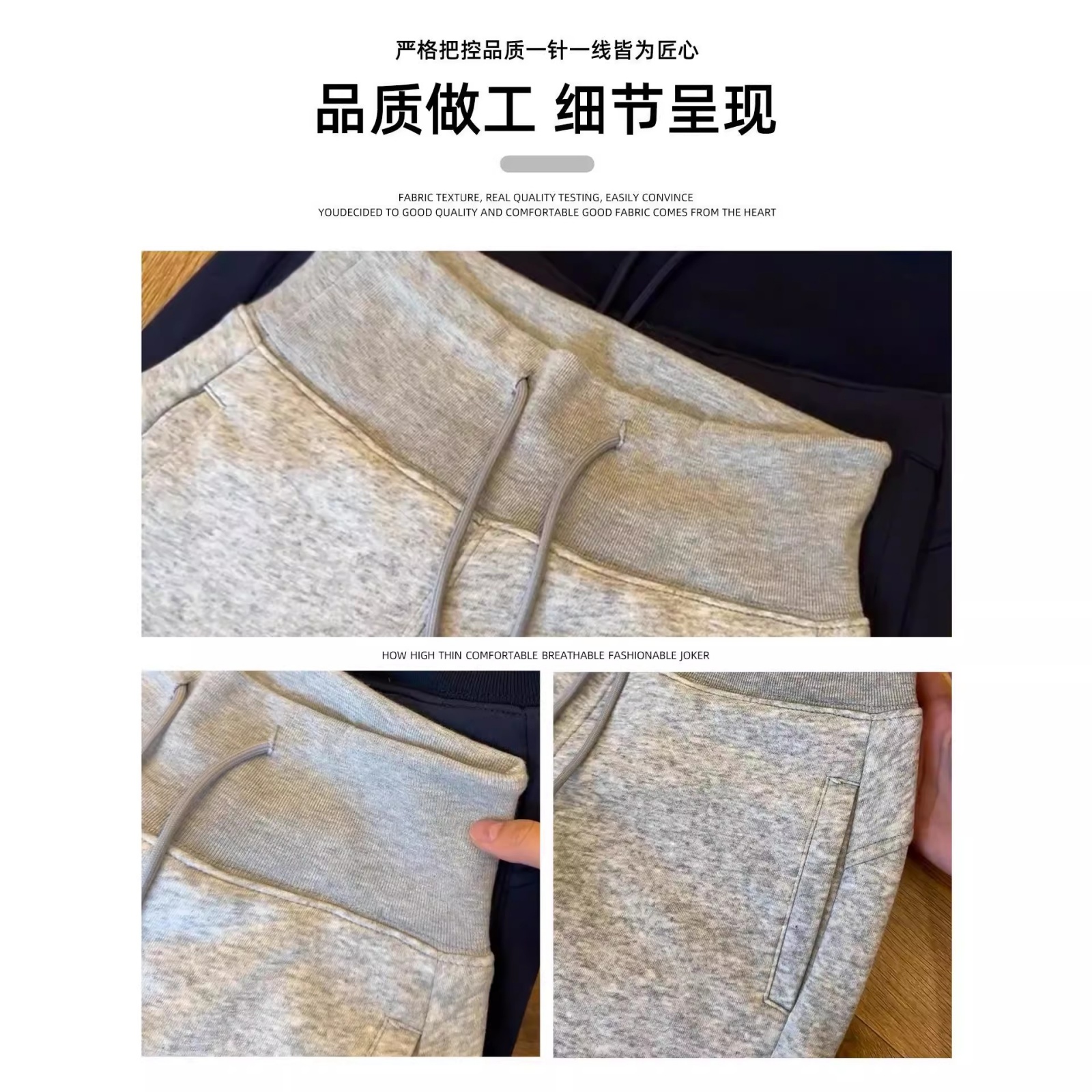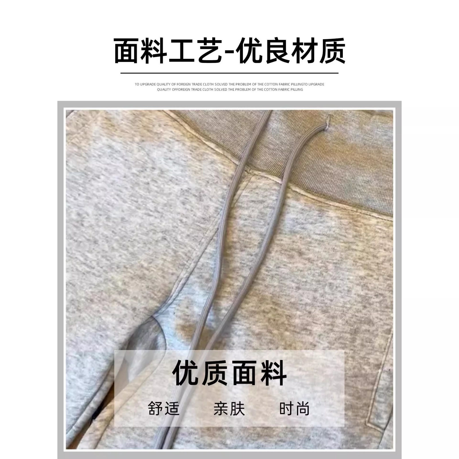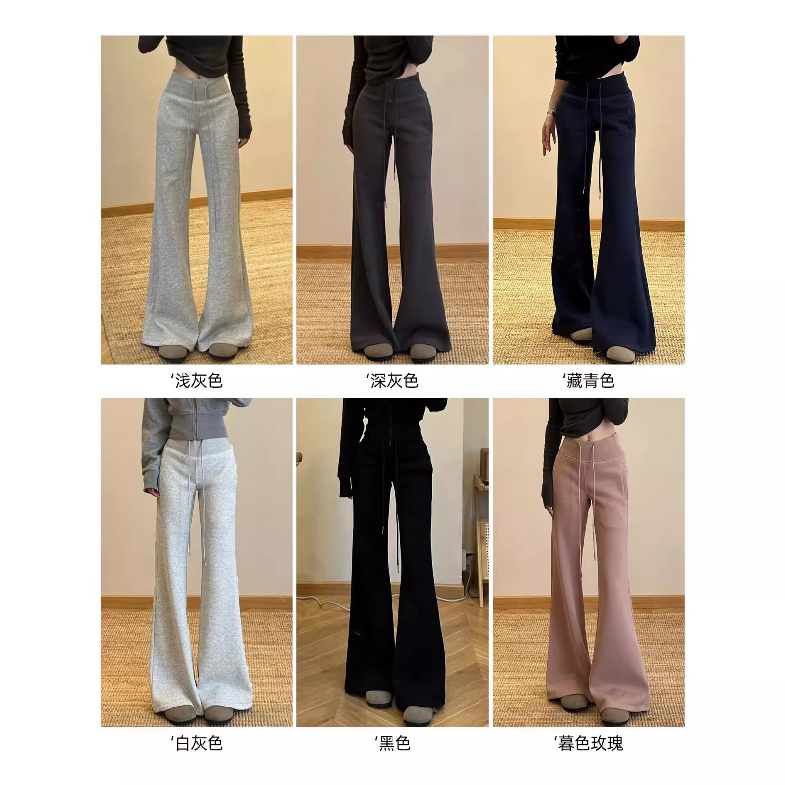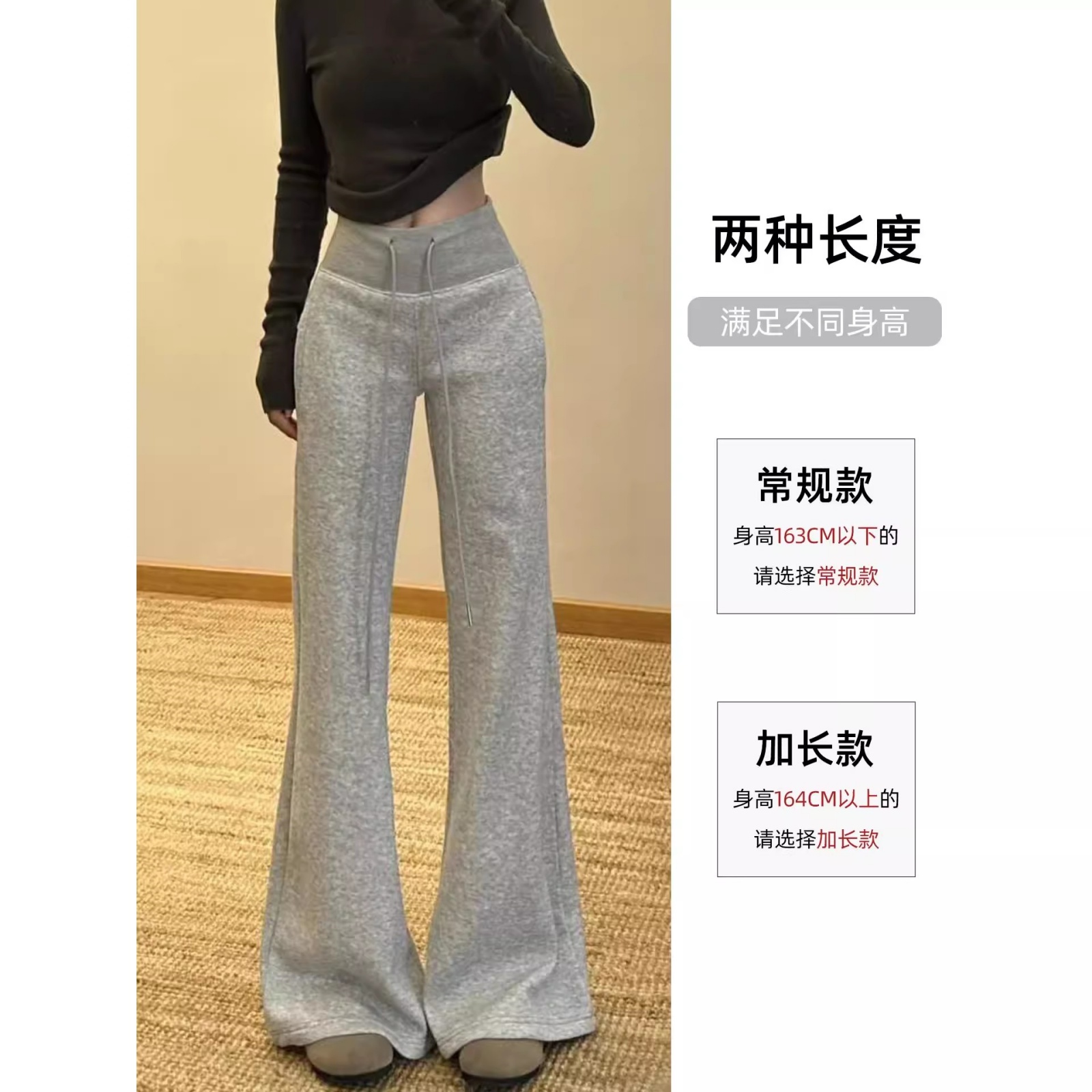 2025新款 女秋季 休闲宽松显瘦阔腿裤 修身 美式 卫裤 浅灰色运动微喇裤