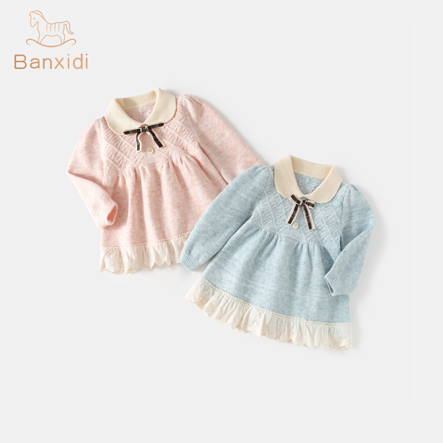 班喜迪女童连衣裙冬装 洋气儿童公主裙宝宝周岁礼服婴儿针织裙秋冬