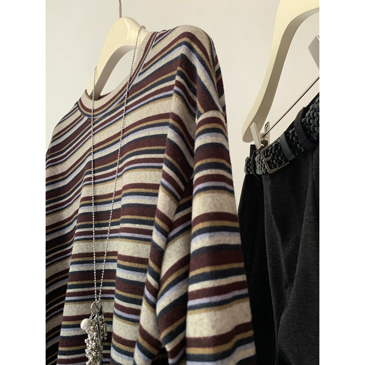 宽松内搭外穿打底衫 韩版 上衣 T恤女春秋季 韩系慵懒风撞色条纹长袖