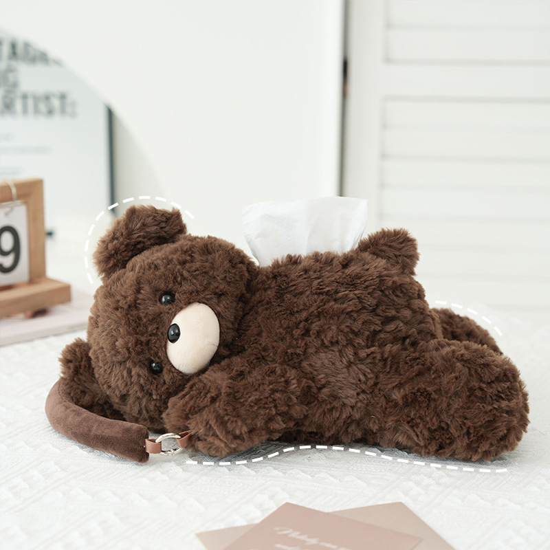 可爱毛绒小熊纸巾袋多功能创意挂式 饰抽纸盒 纸巾盒卧室桌面卡通装