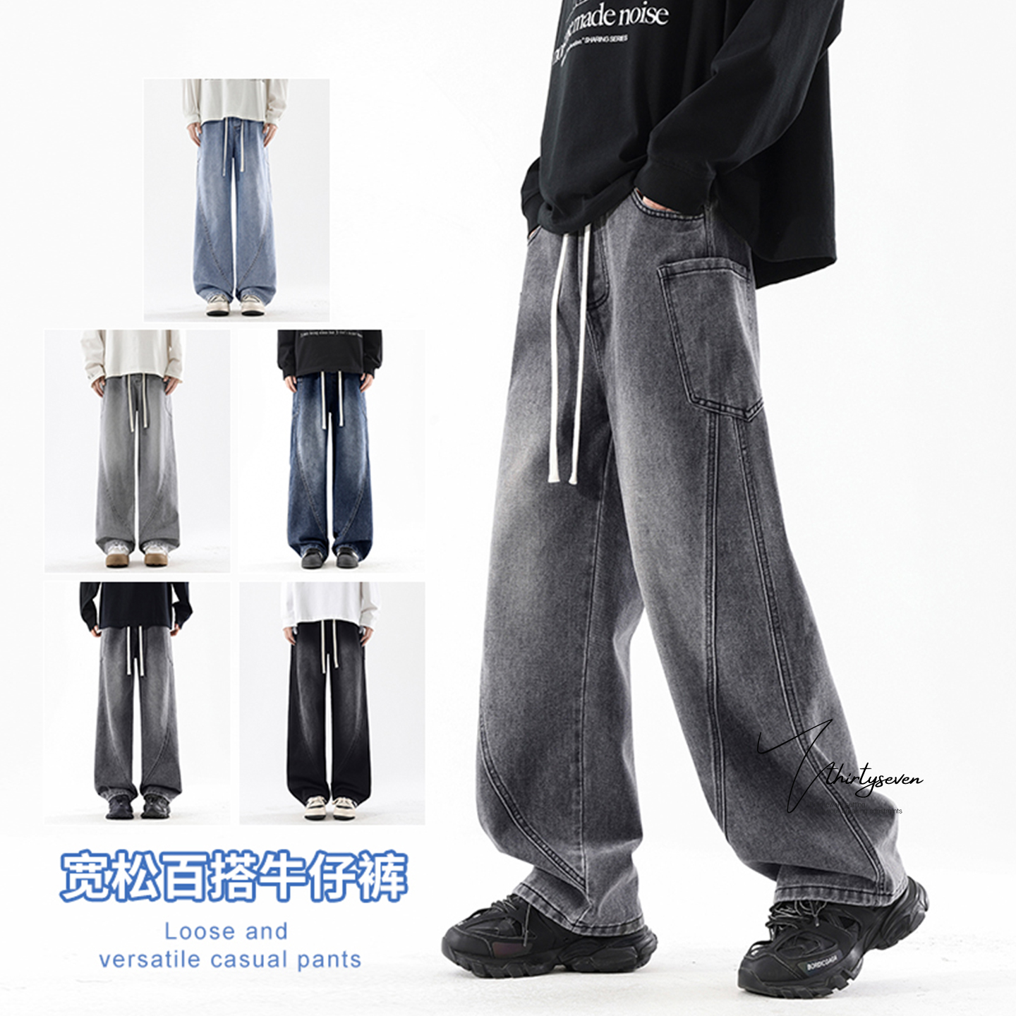 男款 休闲长裤 直筒阔腿裤 高街秋冬季 男生 潮牌美式 CeTky复古牛仔裤