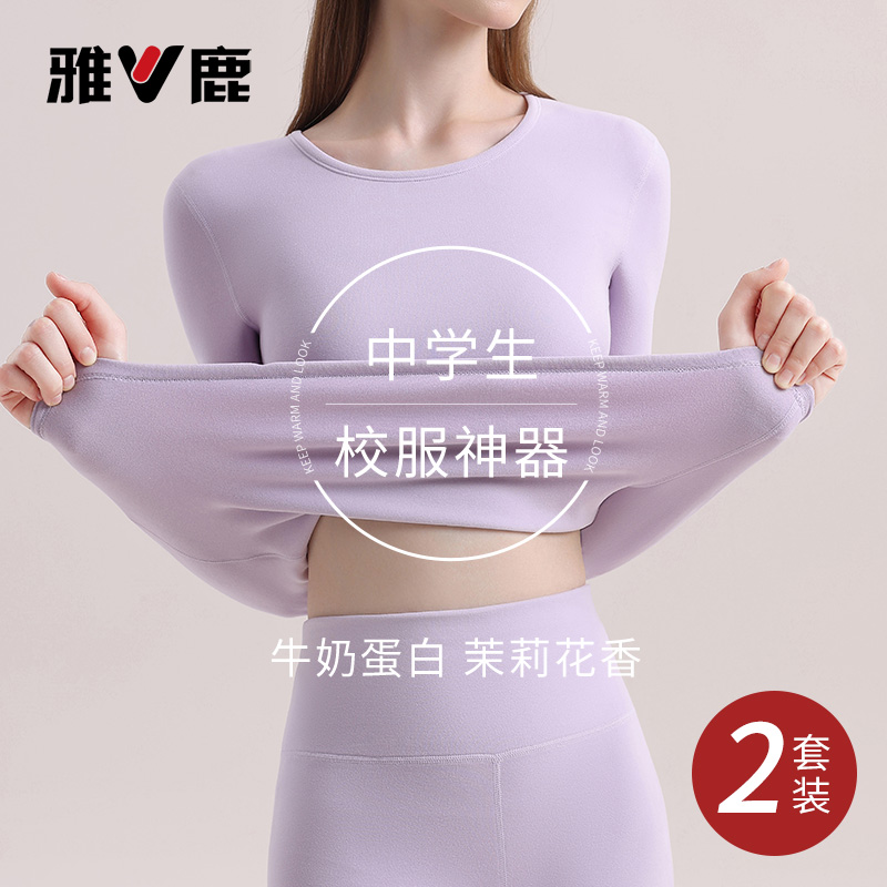 冬季 雅鹿秋衣裤 青少年初高中生女士德绒保暖内衣套装 女款 贴身 秋裤