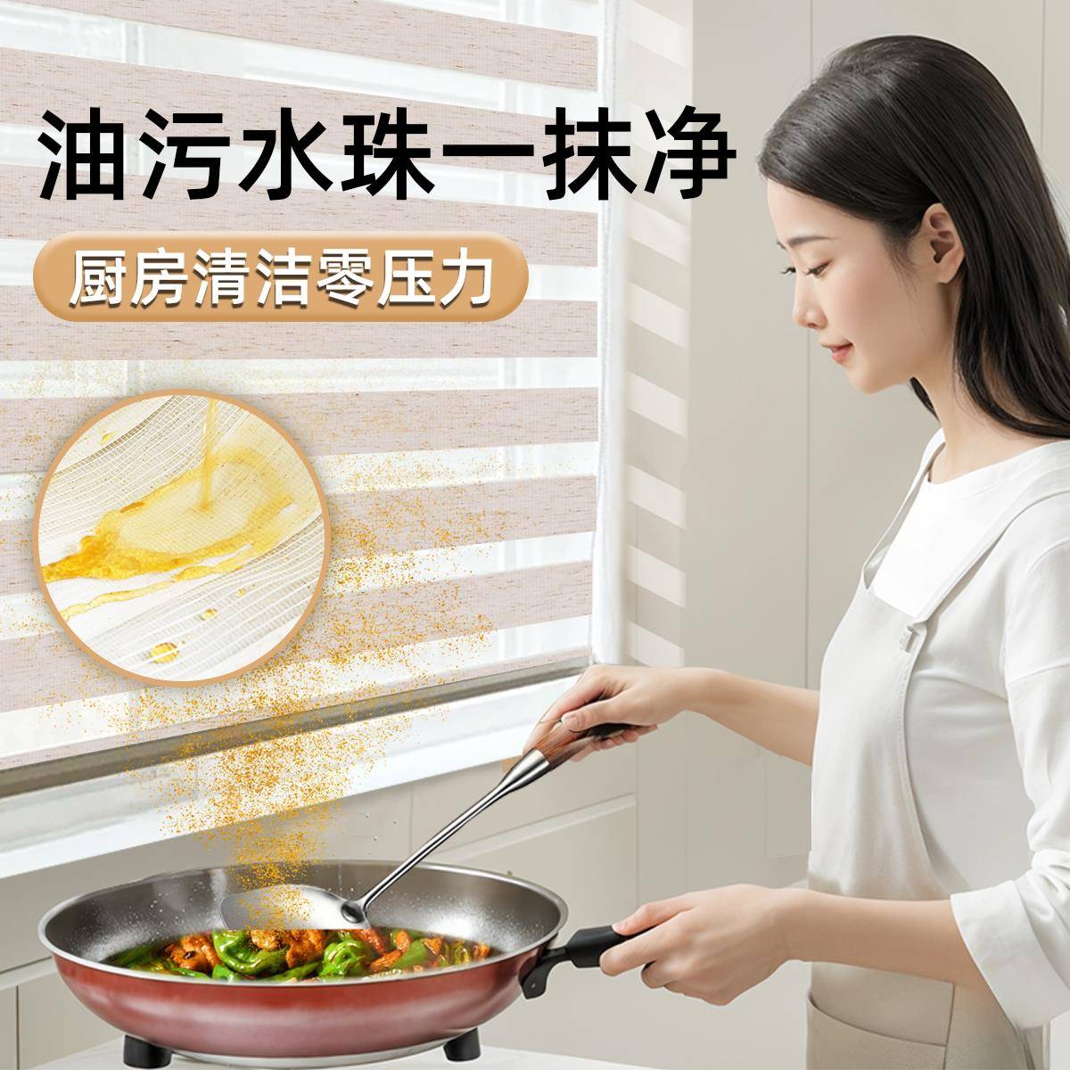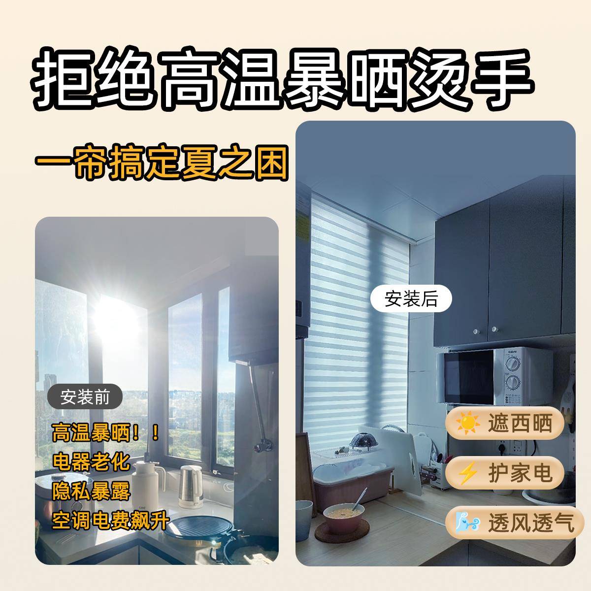 厨房窗帘遮挡帘防油专用免打孔遮阳拉式 百叶窗户遮光卷帘防晒隔热