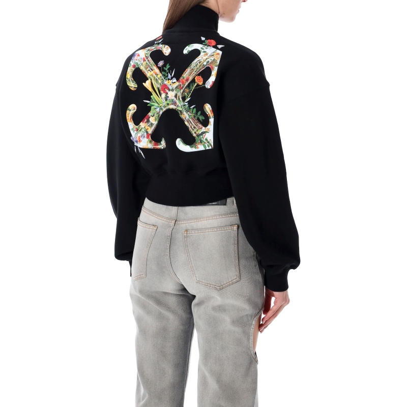 White Off 女款 GLASS 箭号印花拉链抓绒外套 黑色短款 秋冬新品
