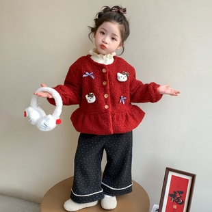 套装 叠穿内搭T恤木耳边牛仔阔腿裤 新款 蓝色镂空针织背心裙女秋季