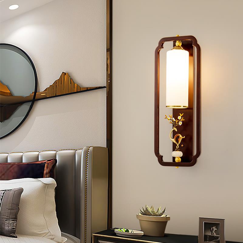 线充电床头卧室客厅实木背景墙过道中 免接线 新中式 壁灯2025新款