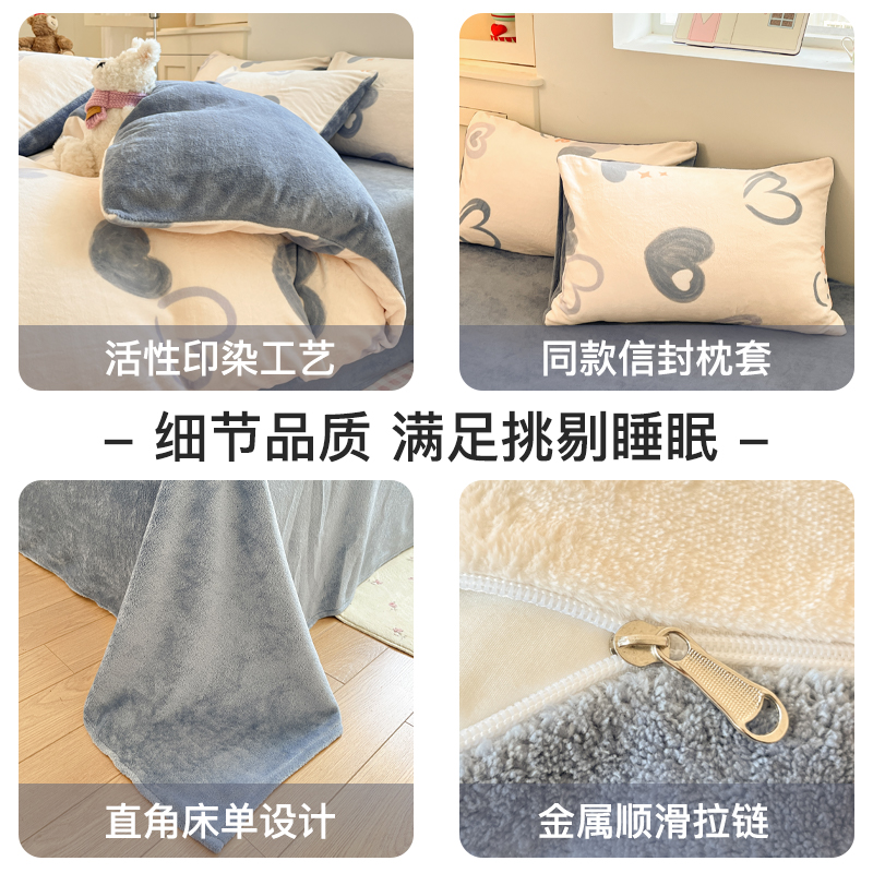 牛奶绒被套单件秋冬季 加绒150x200x230珊瑚绒被单单人被罩四件套m