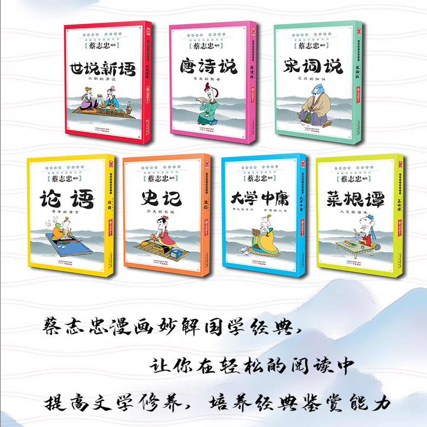 蔡志忠漫画国学经典 适合6 论语大学中庸世说新语唐诗宋词说史记菜根谭dd 12岁小学生儿童搞笑幽默故事书 全套7册彩色赠明信片
