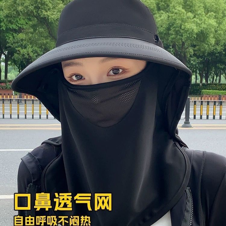 防晒帽套装 冰袖 防紫外线登山遮全脸面纱男款 冰丝骑行防晒面罩男士