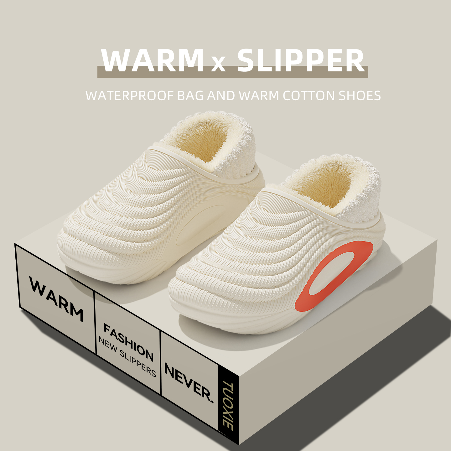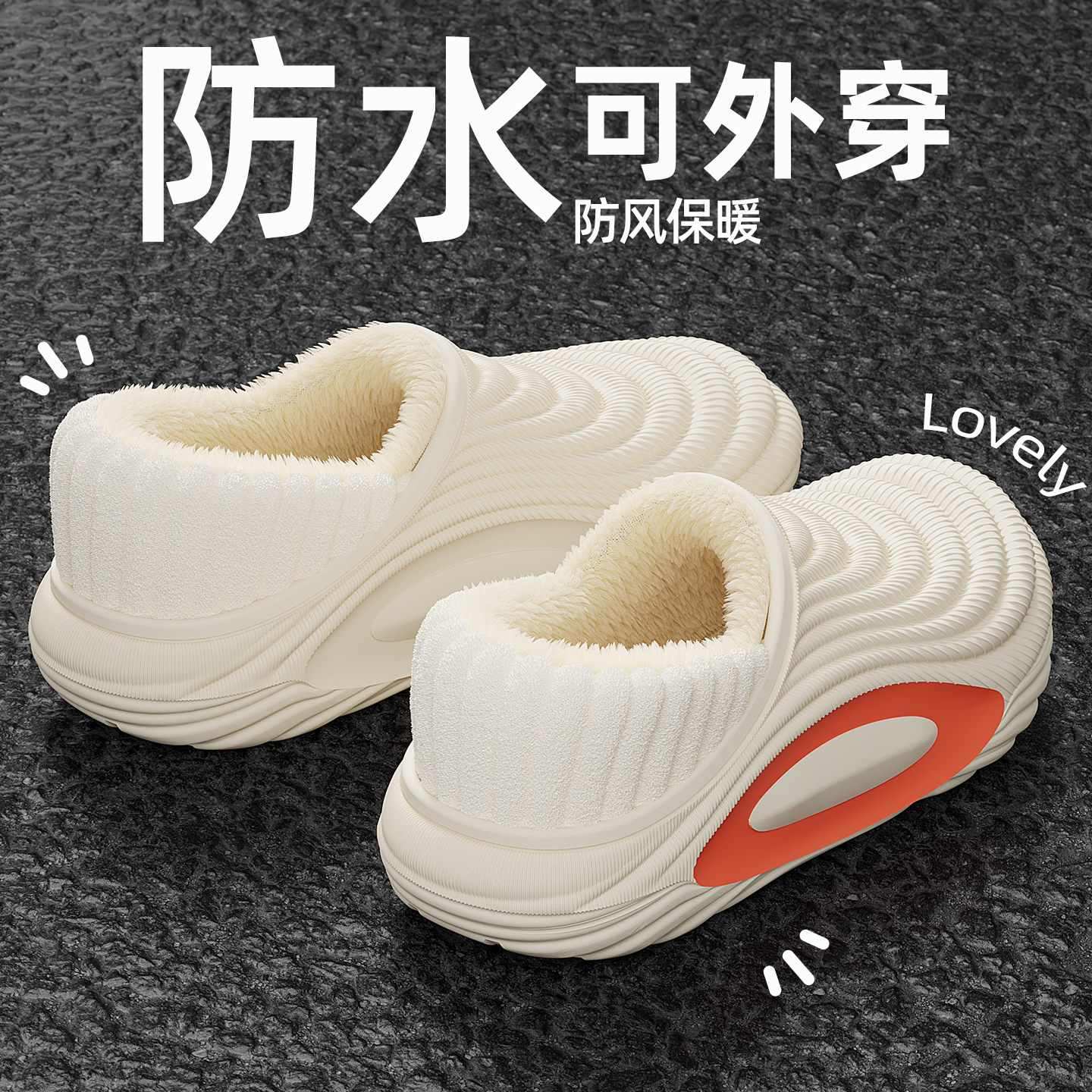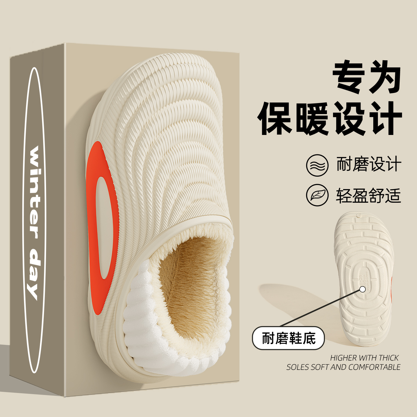 室内家居厚底包跟保暖加绒棉鞋 防水棉拖鞋 2025新款 冬季 男外穿 男士