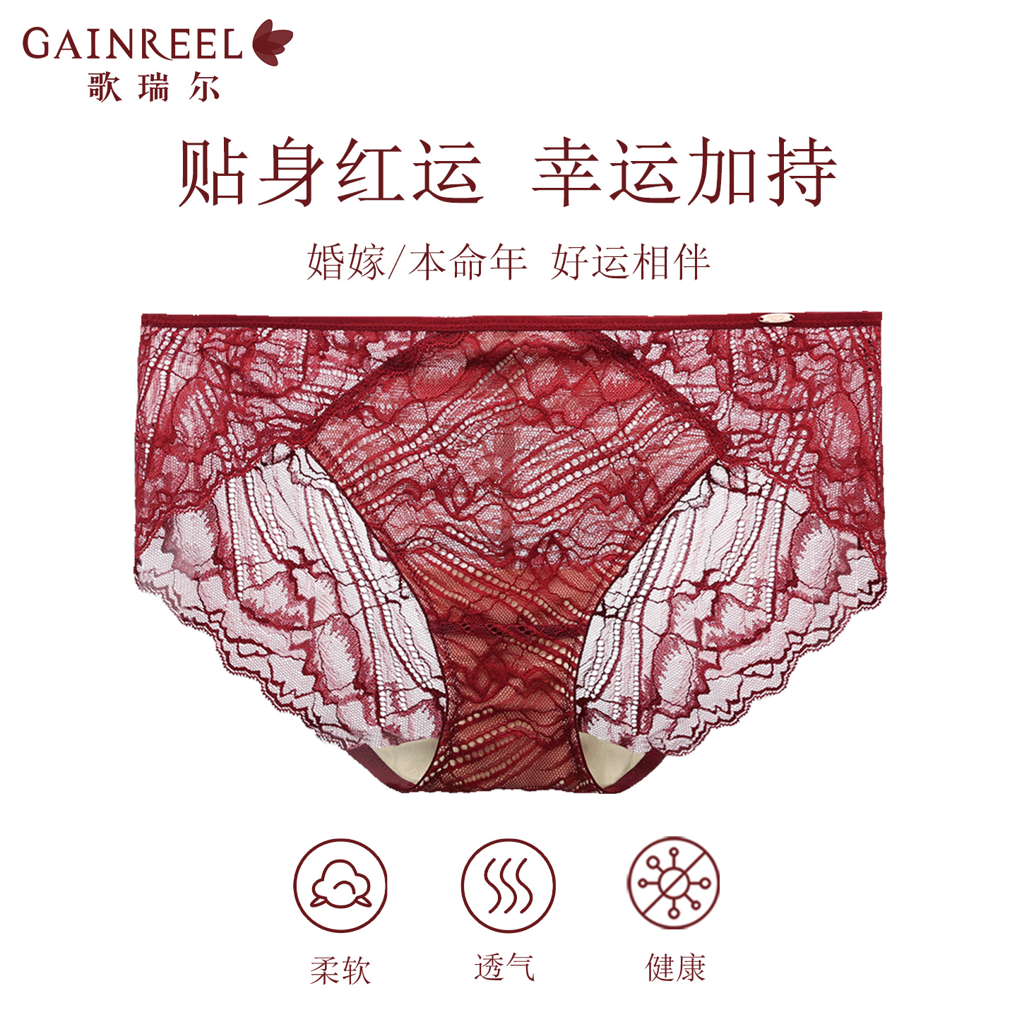 蕾丝结婚新娘底裤 性感三角舒适透气法式 女2025新款 歌瑞尔红色内裤