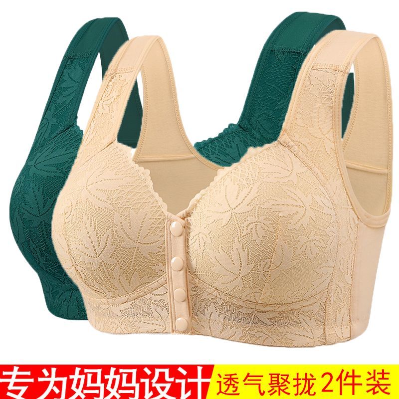 新款 聚拢防下垂美背定型上托无钢圈女士内衣 中老年妈妈文胸前扣式
