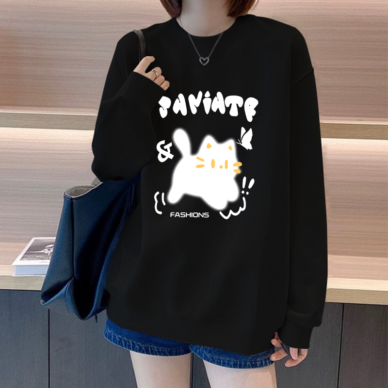 好看刺绣绒衫 LAGOGO黄油泡芙圆领加绒卫衣女拉谷谷2025年冬季 新款