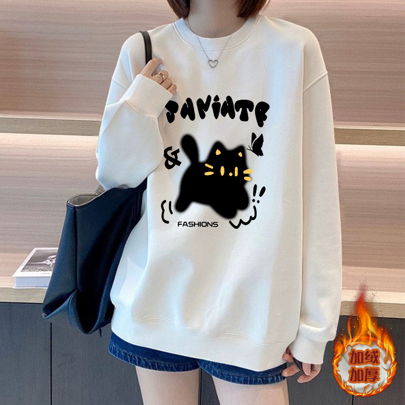 豹纹拼接字母印花卫衣女2025冬加绒加厚奥利绒绒打底拼接撞色绒衫