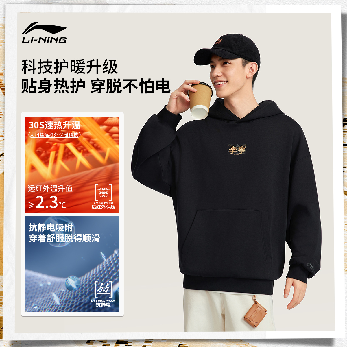 莱赛尔五明治宽松休闲套头衫 男士 卫衣 新款 361运动卫衣男2025秋季