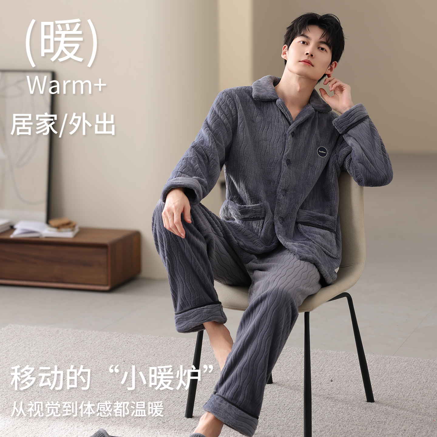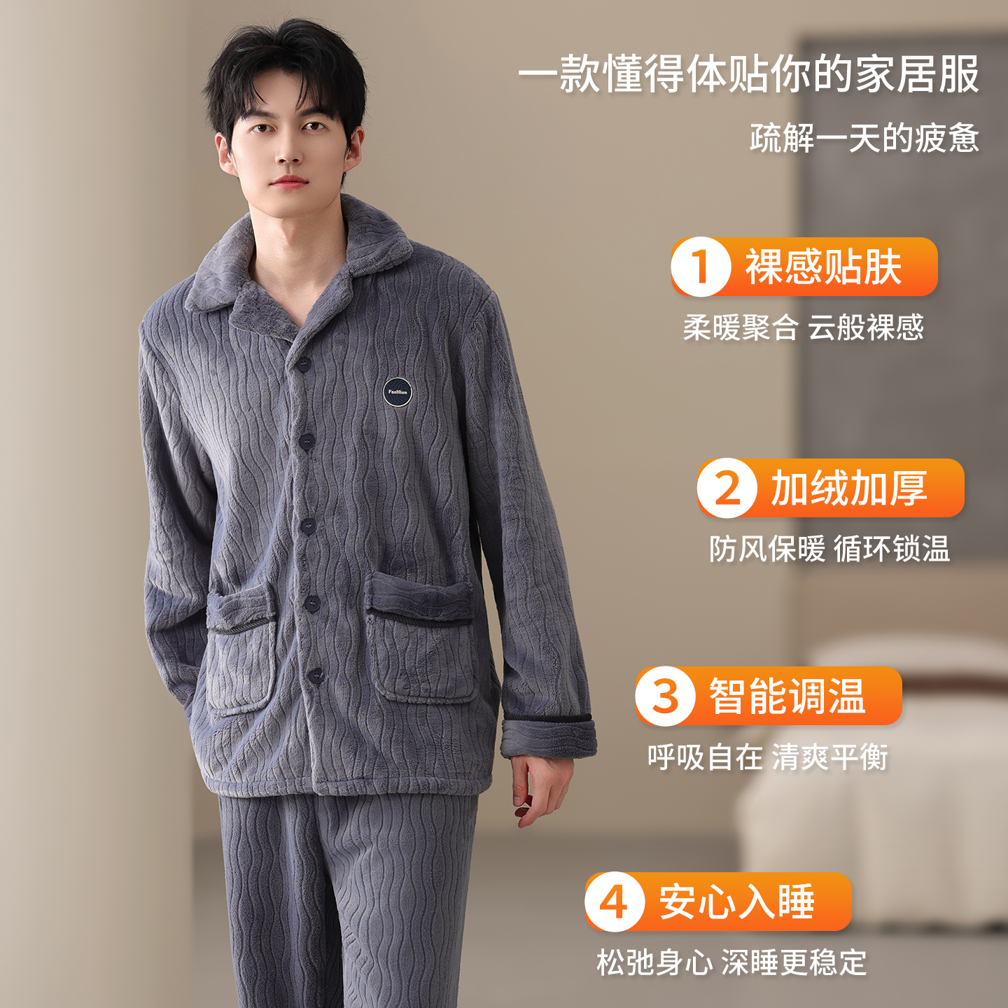 家居服套装 都市丽人珊瑚绒睡衣男秋冬2025新款 冬加厚法兰绒长袖