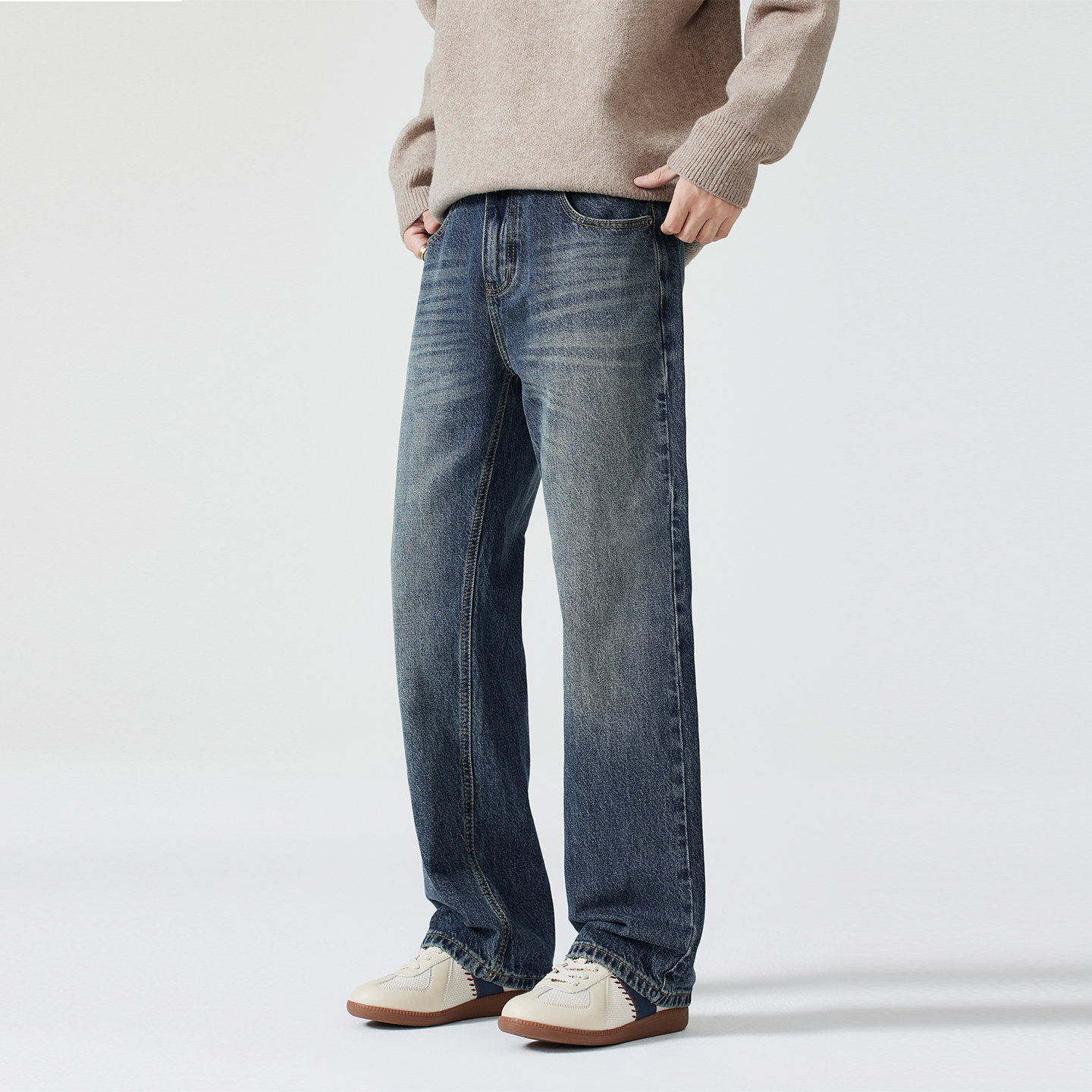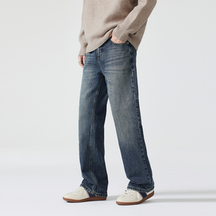 森马牛仔裤 百搭通勤长裤 男冬季 时尚 复古水洗棉质弹力小脚裤 森柔