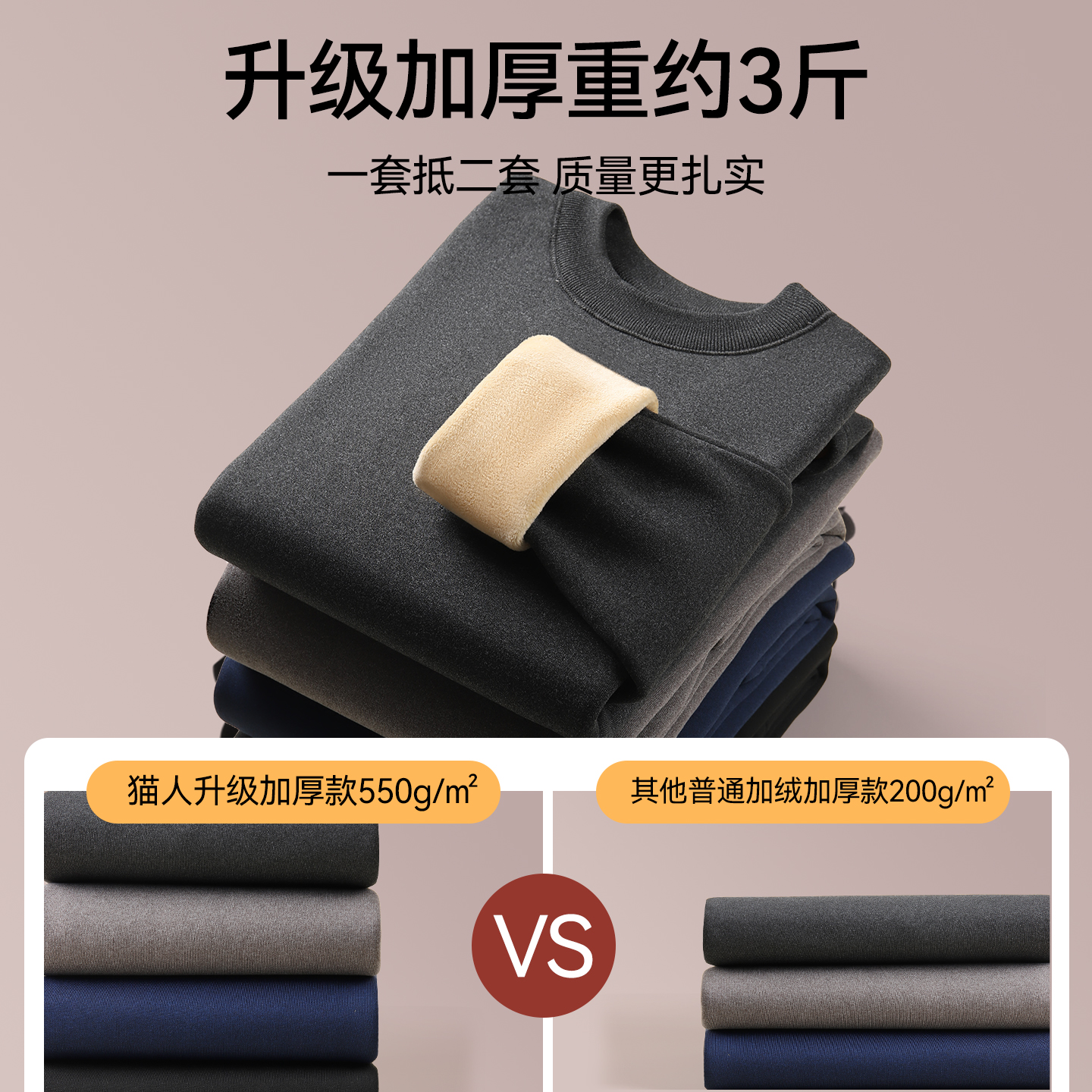 女 内衣羊毛秋衣秋裤 肖战同款 小黑猫猫人倍暖5.0科技打底保暖套装