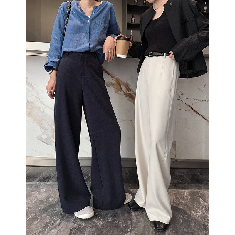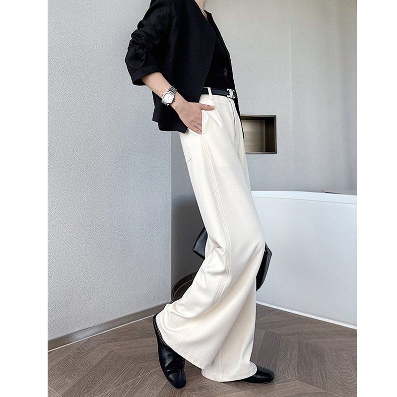 女垂感高级感高腰宽松高个子加长天丝绵羊毛拖地阔腿裤 白色西装 裤