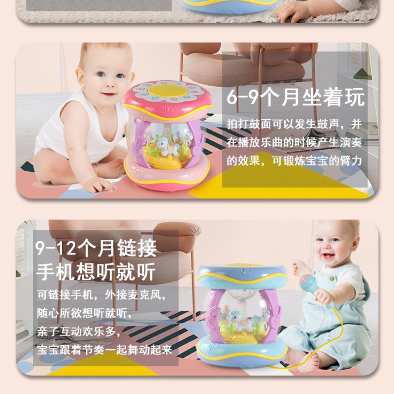 宝宝旋转木马手拍鼓音乐鼓电动拍拍鼓儿童玩具鼓充电鼓婴儿早教