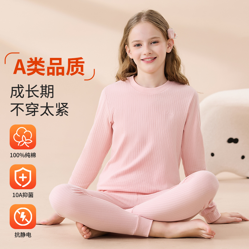保暖内衣 儿童男童中大童小学女孩全棉毛衫 初中生纯棉秋衣秋裤 套装