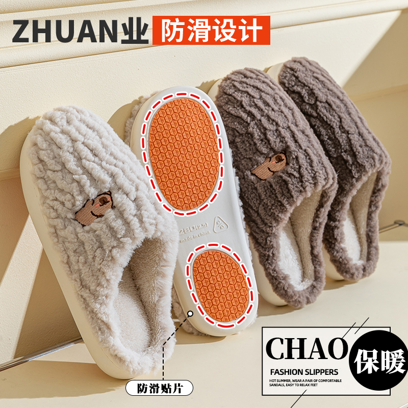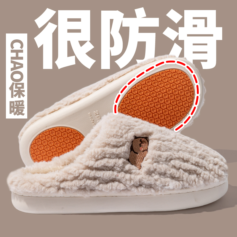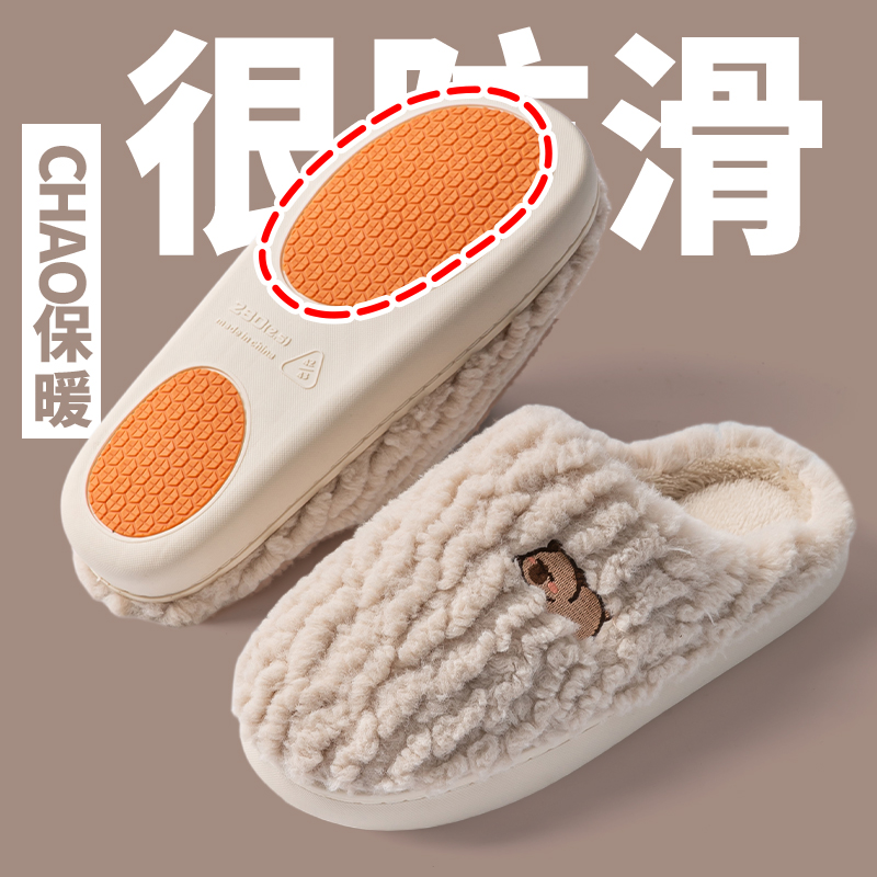 居家用保暖月子老人防摔毛毛绒厚底男 2025新款 防滑棉拖鞋 女秋冬季