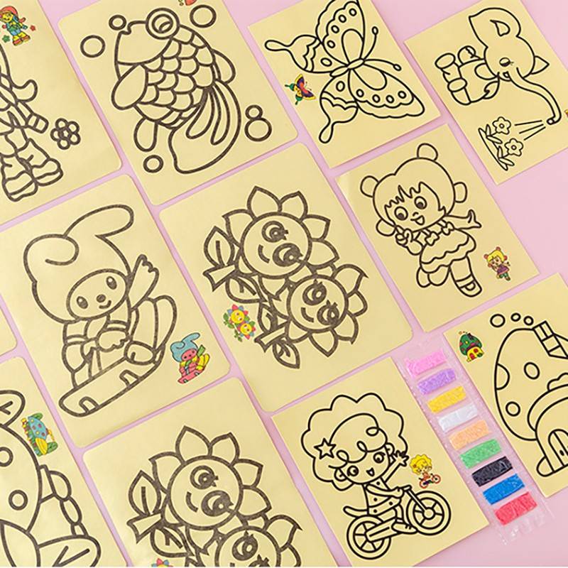 儿童diy手工填色画画沙画彩沙刮画纸玩具女孩胶画涂色画板涂料男6