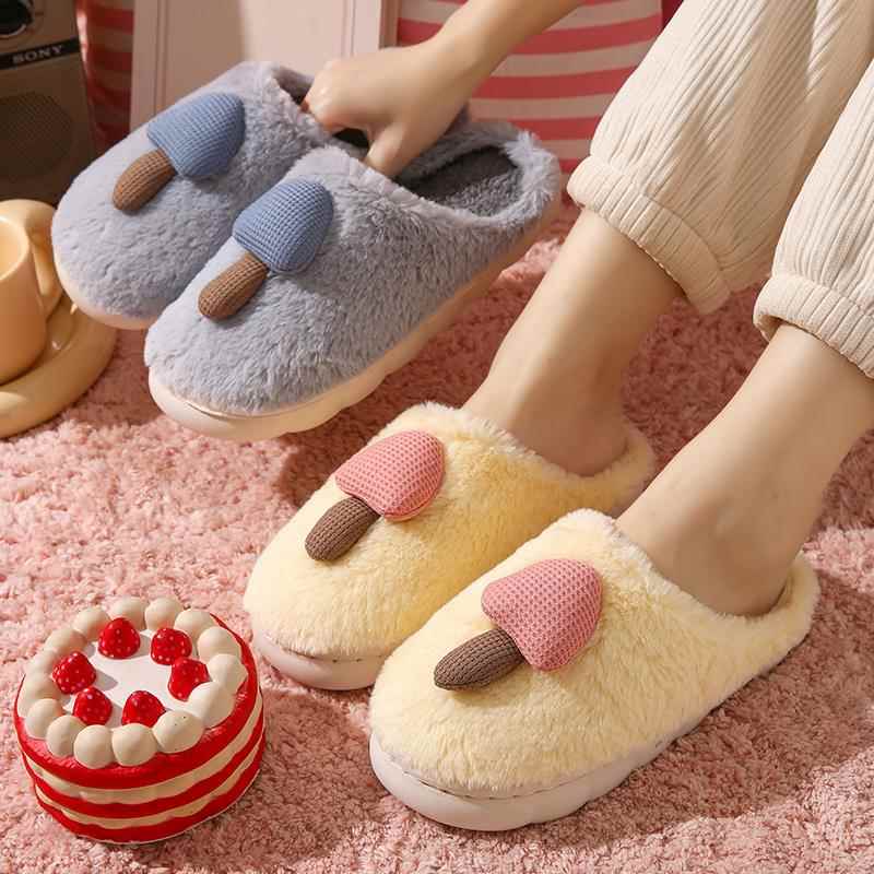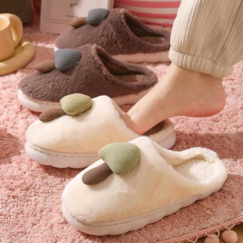 室内家居家防滑厚底踩屎感毛毛绒保暖情侣拖鞋 秋冬季 女 男士 棉拖鞋