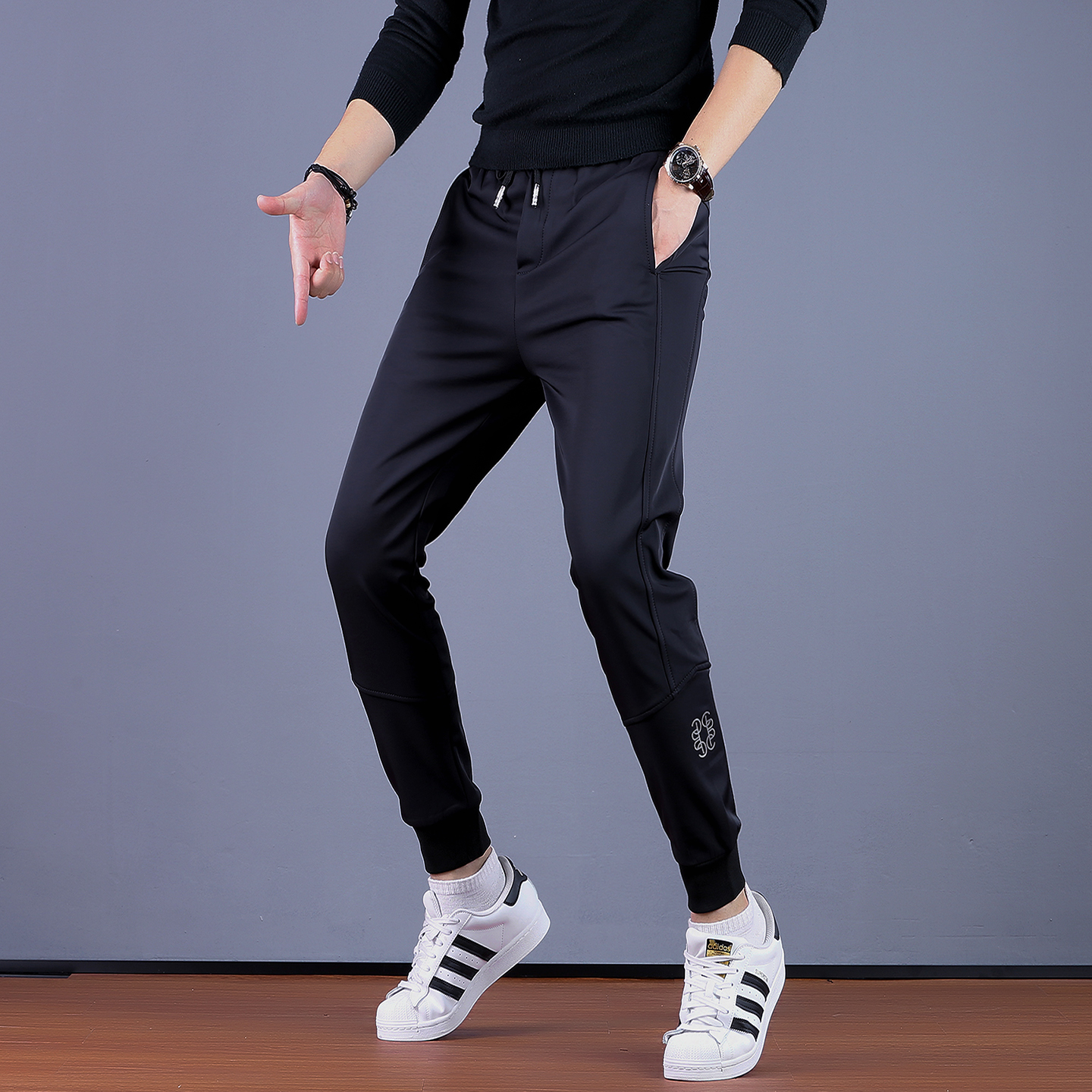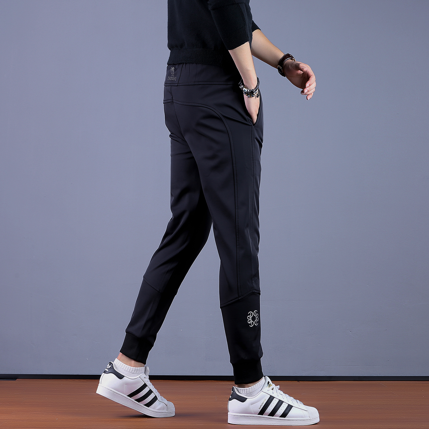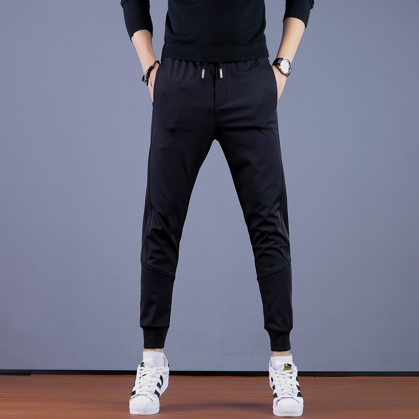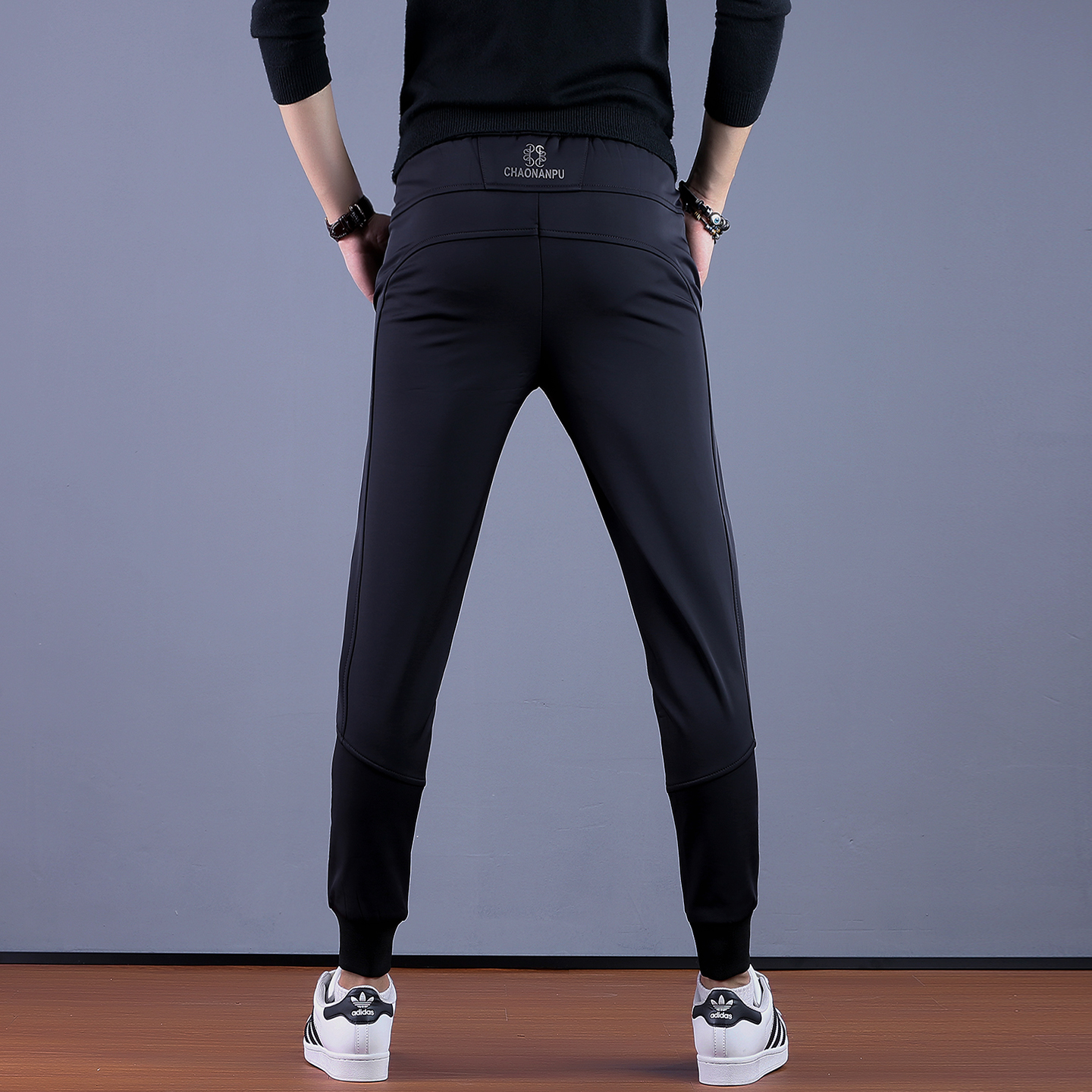休闲裤 黑色拼接抽绳弹力男裤 男潮流小脚裤 潮牌长裤 秋冬款 2025新款