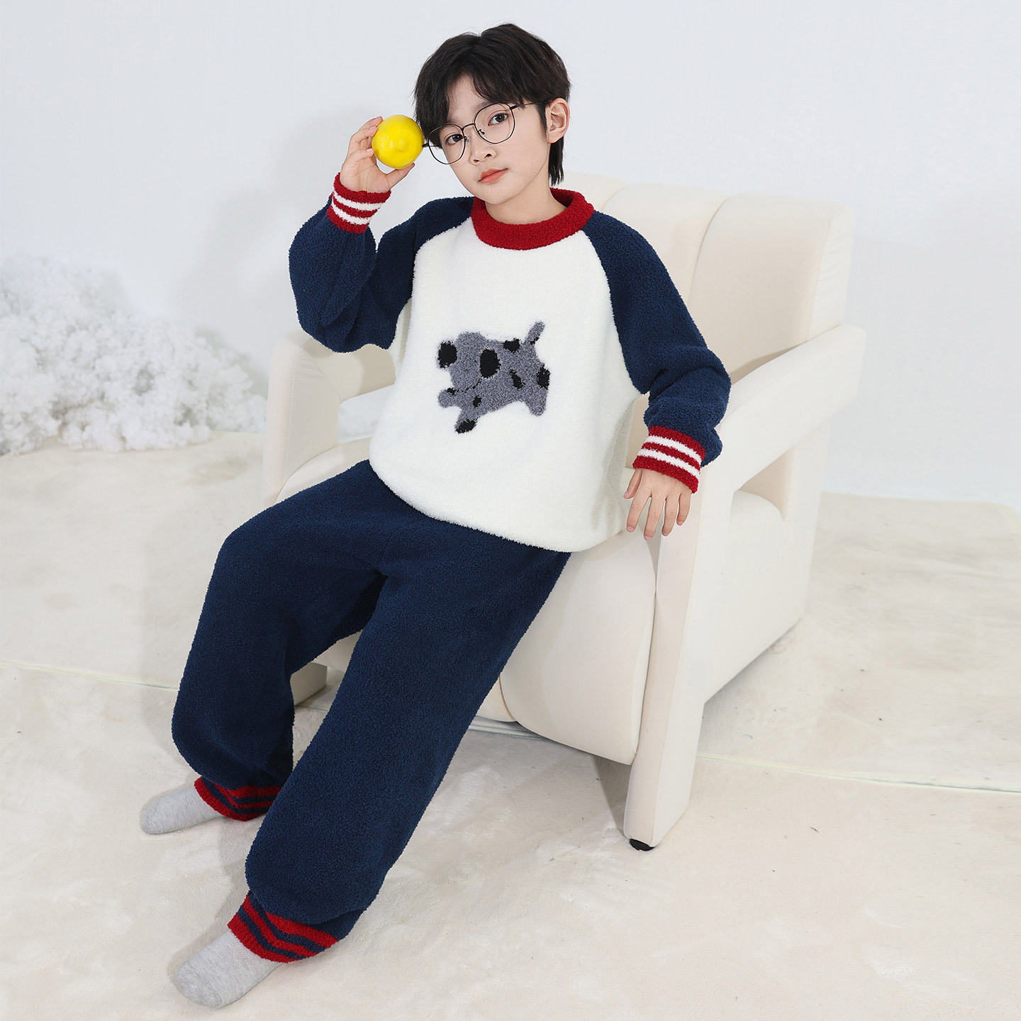 珊瑚绒睡衣情侣秋冬开衫 造福鸟新款 法兰绒家居服套装 蜂狂双11