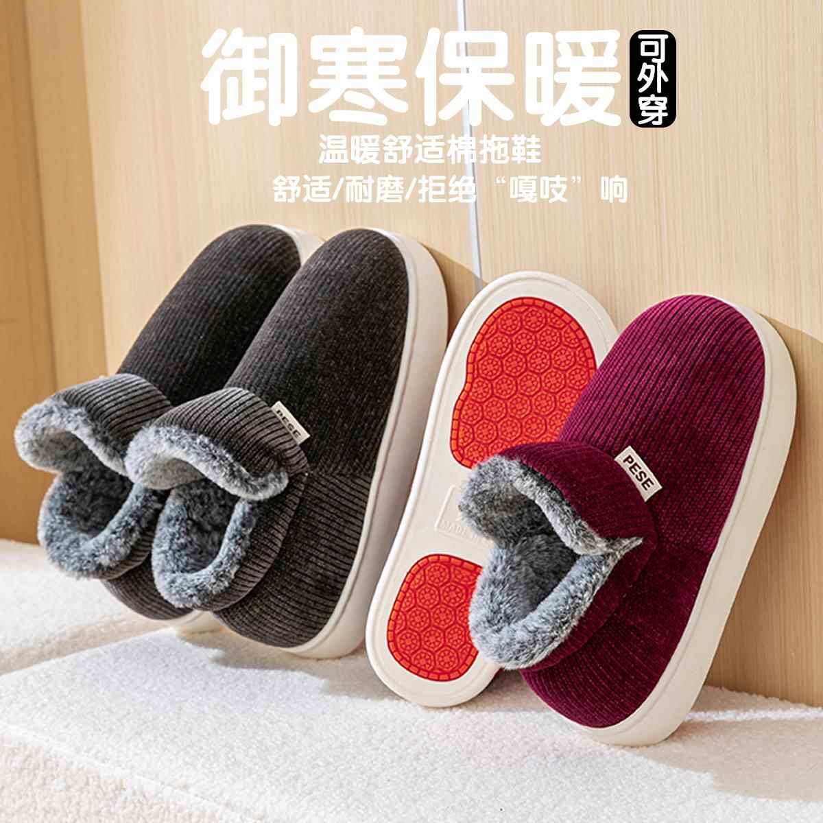 居家防滑妈妈中老年包跟棉鞋 加绒2025新款 女士冬天 冬季 老人棉拖鞋