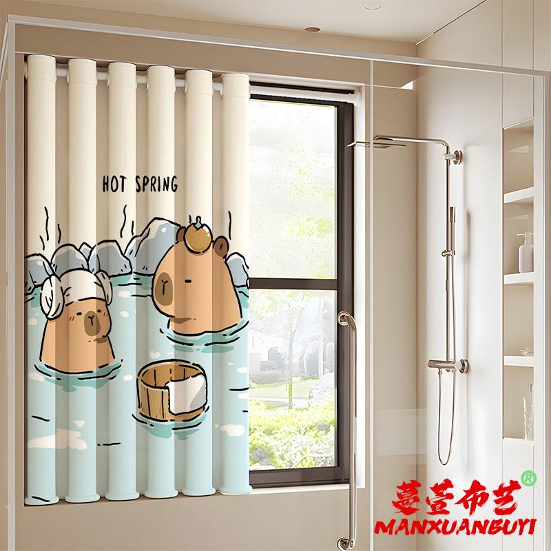 浴室卫生间家用窗帘免打孔安装 卧室厕所小窗户防水防窥专用遮挡帘
