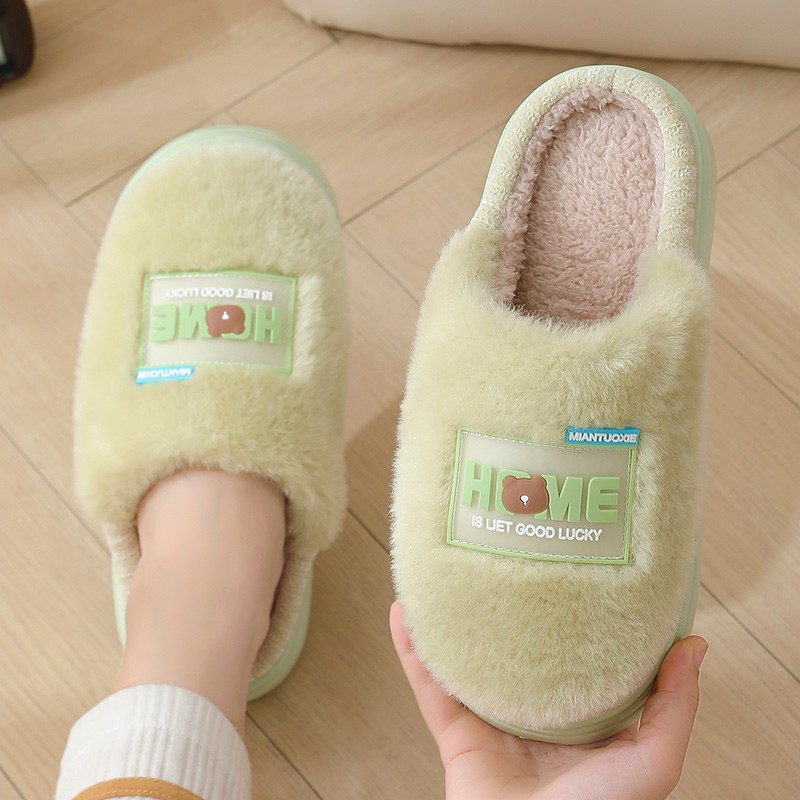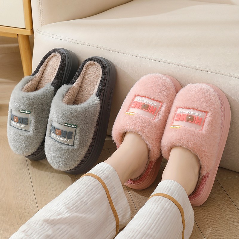 室内家居家防滑厚底踩屎感毛毛绒保暖情侣拖鞋 秋冬季 女 男士 棉拖鞋