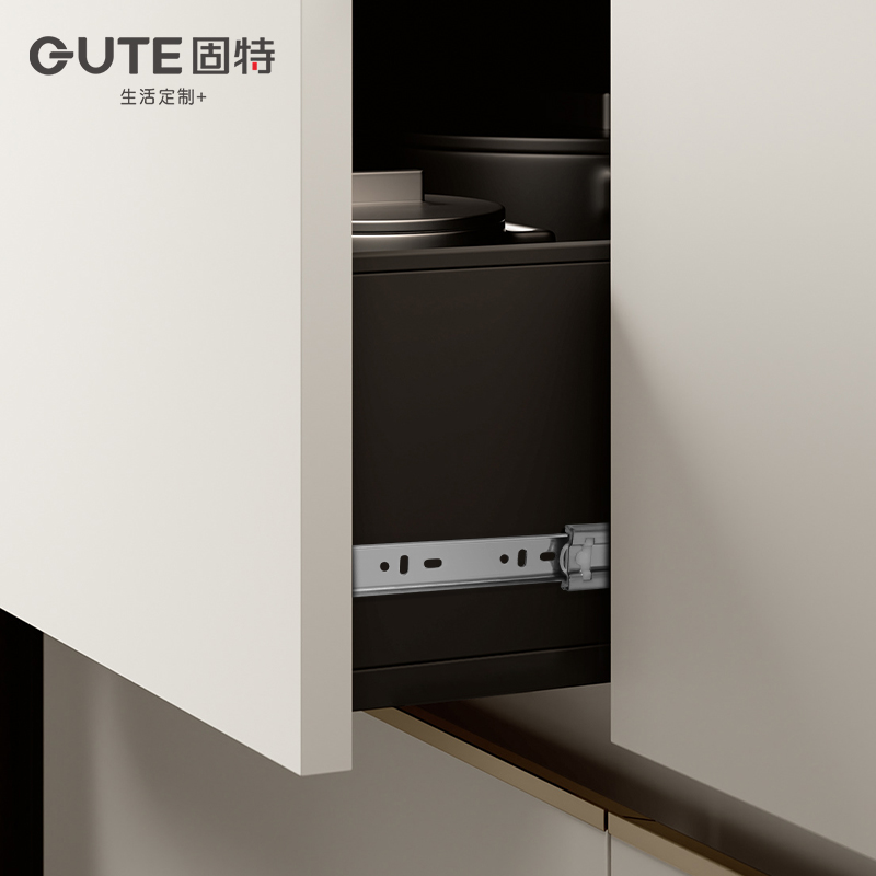 固特加厚不锈钢抽屉轨道阻尼缓冲橱柜滑轨静音键盘导轨家用三节轨