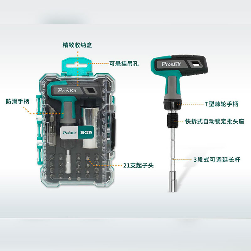 宝工25合1T型棘轮万用套筒起子多功能螺丝刀组棘轮T型手柄SD2325