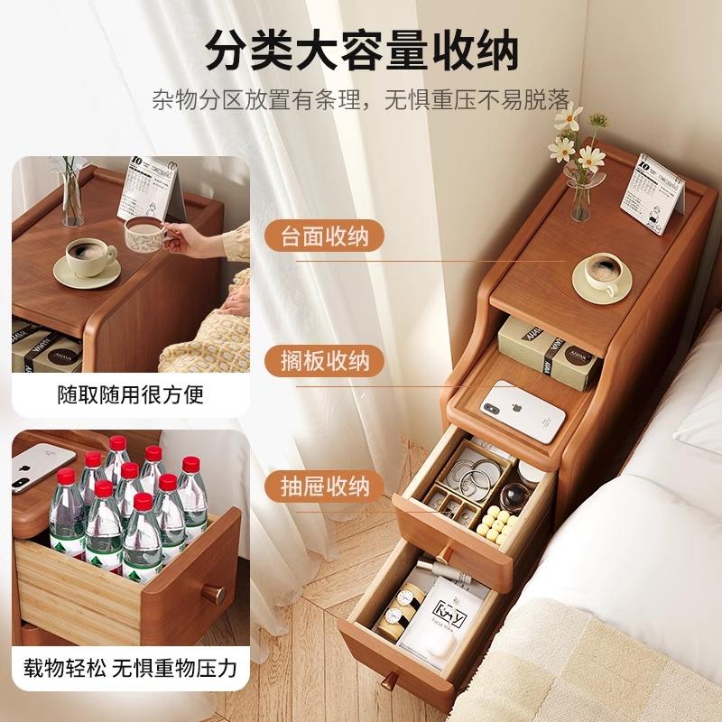 实木床头柜超窄家用卧室2025爆款 收纳柜子 小型极窄简约现代免安装