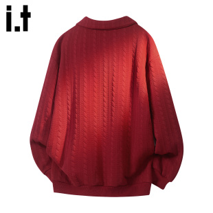 V37潮牌复古纯色针织衫 慵懒风双拉链外套高街休闲上衣 毛衣男秋季