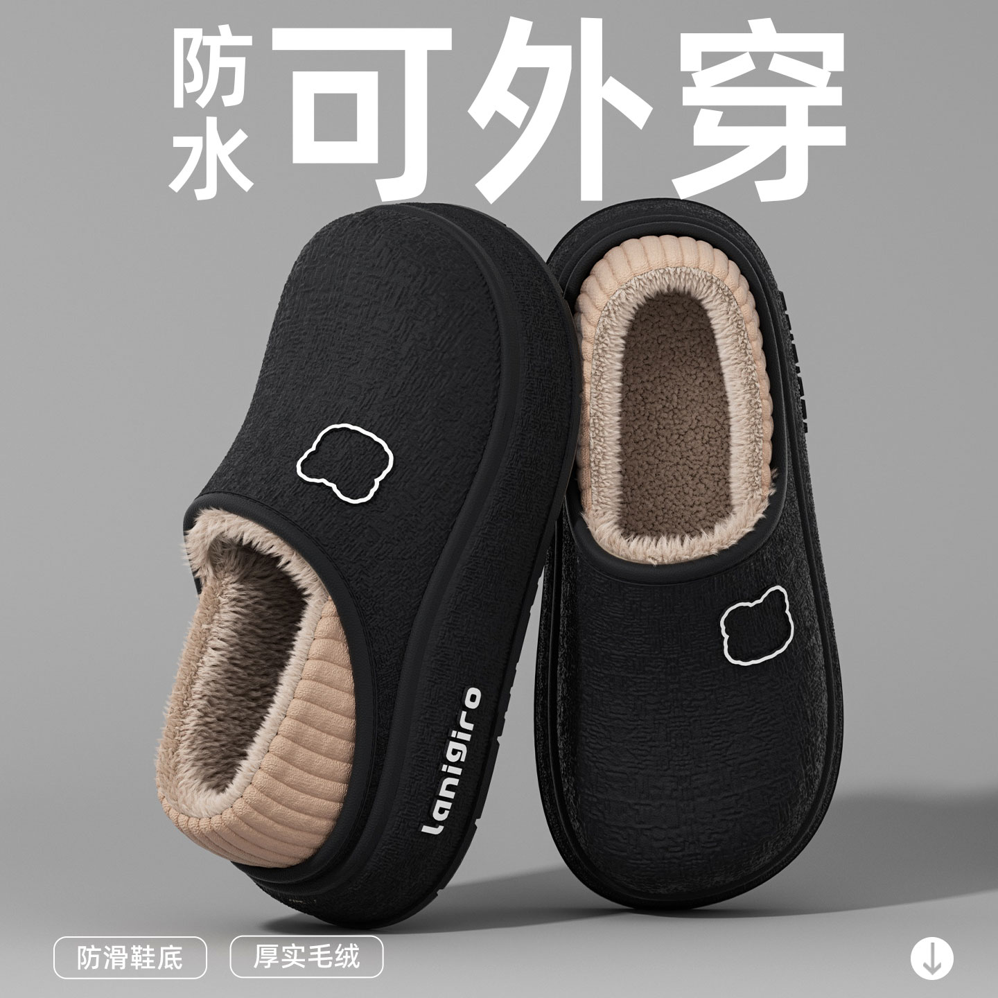 棉拖鞋 男士 男款 外穿加绒保暖包头棉鞋 办公室软底防滑 冬季 超火拖鞋