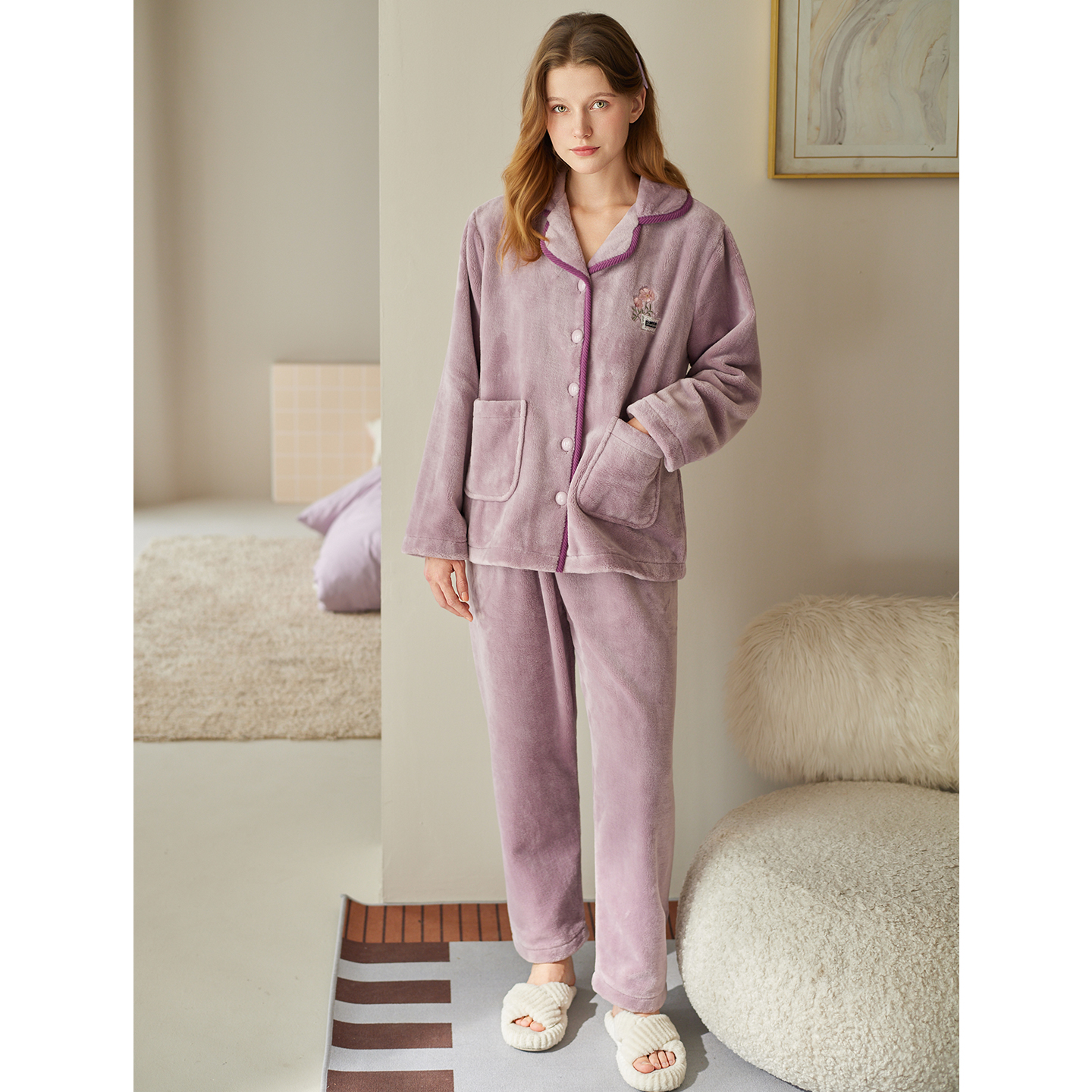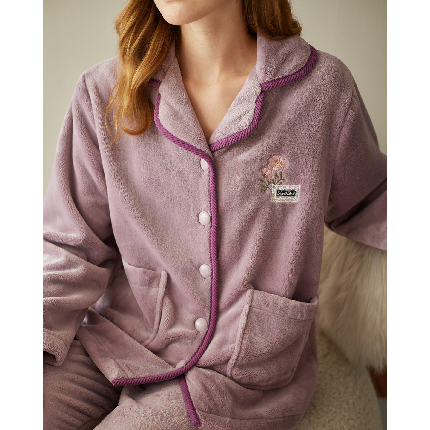 法兰绒春秋天套装 秋冬季 珊瑚绒睡衣女冬加厚加绒家居服2025年新款
