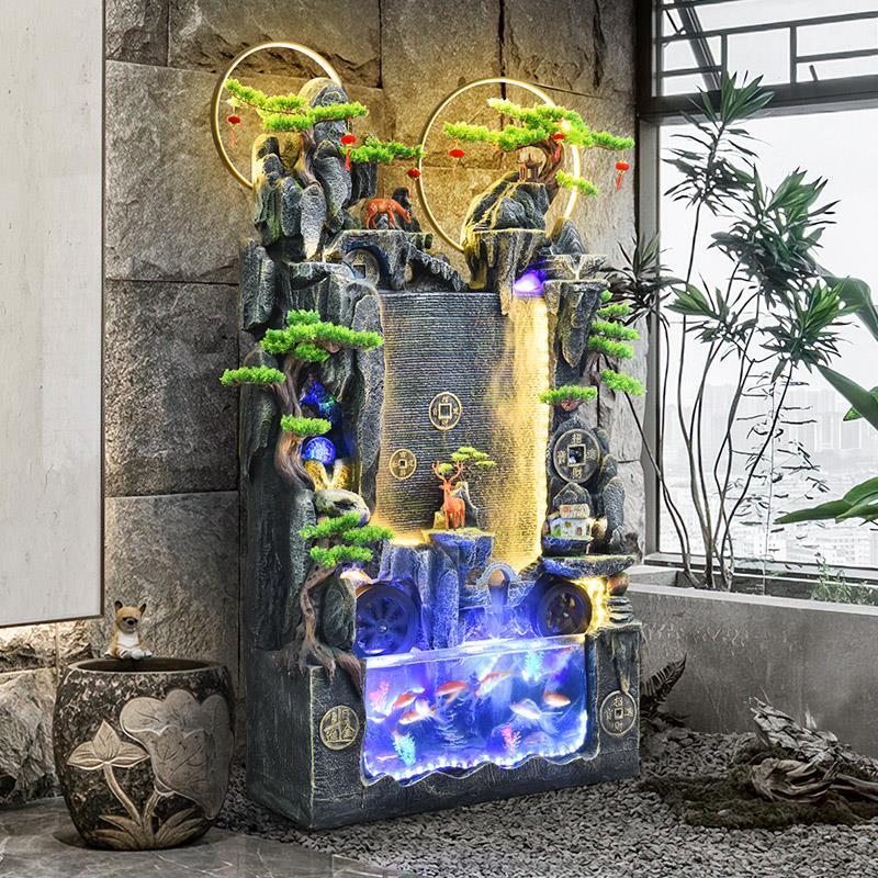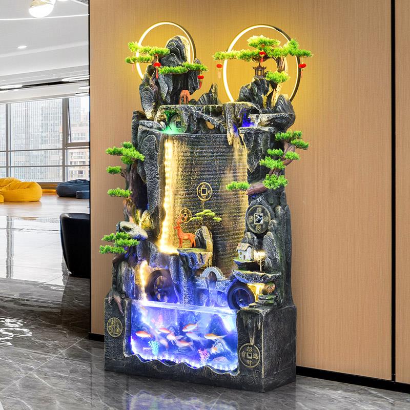 大型假山流水喷泉落地摆件鱼缸客厅阳台风水轮循环水幕景观加湿器