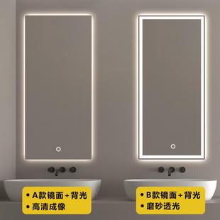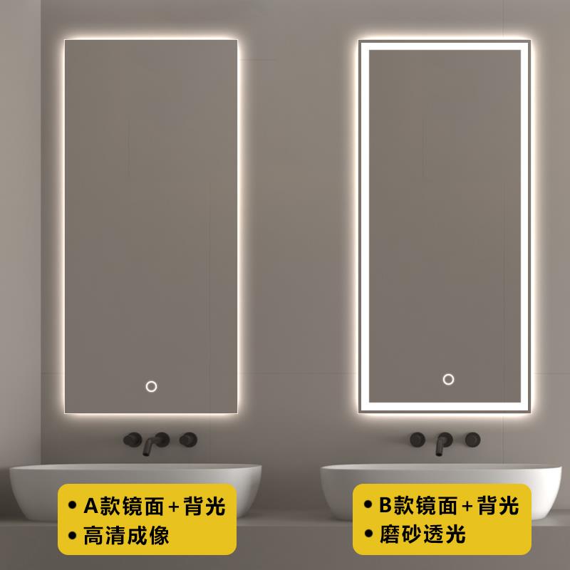 智能浴室镜方形直角挂墙式 卫生间镜子竖挂防雾带灯光LED定制镜子