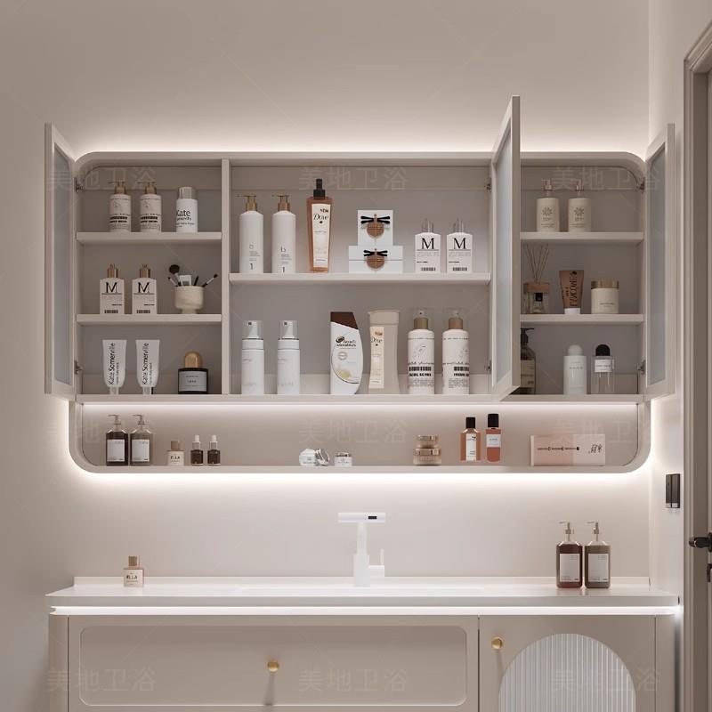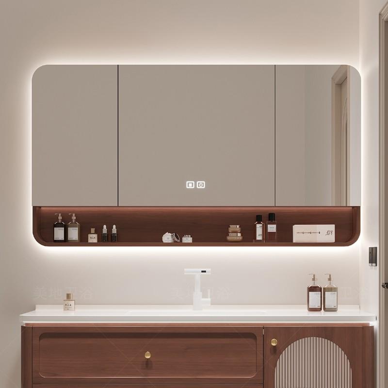 橡木烤漆单独浴室智能镜柜圆角镜卫生间挂墙式 圆弧储物镜子箱定制
