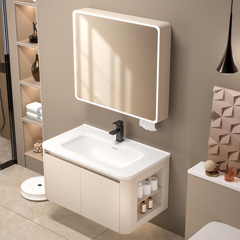 智能橡木烤漆侧边收纳浴室柜卫生间洗脸盆柜组合陶瓷一体盆洗漱台