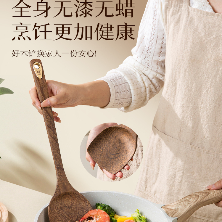 双枪锅铲鸡翅木铲子不粘锅专用木铲家用炒菜铲子耐高温炒勺木饭勺