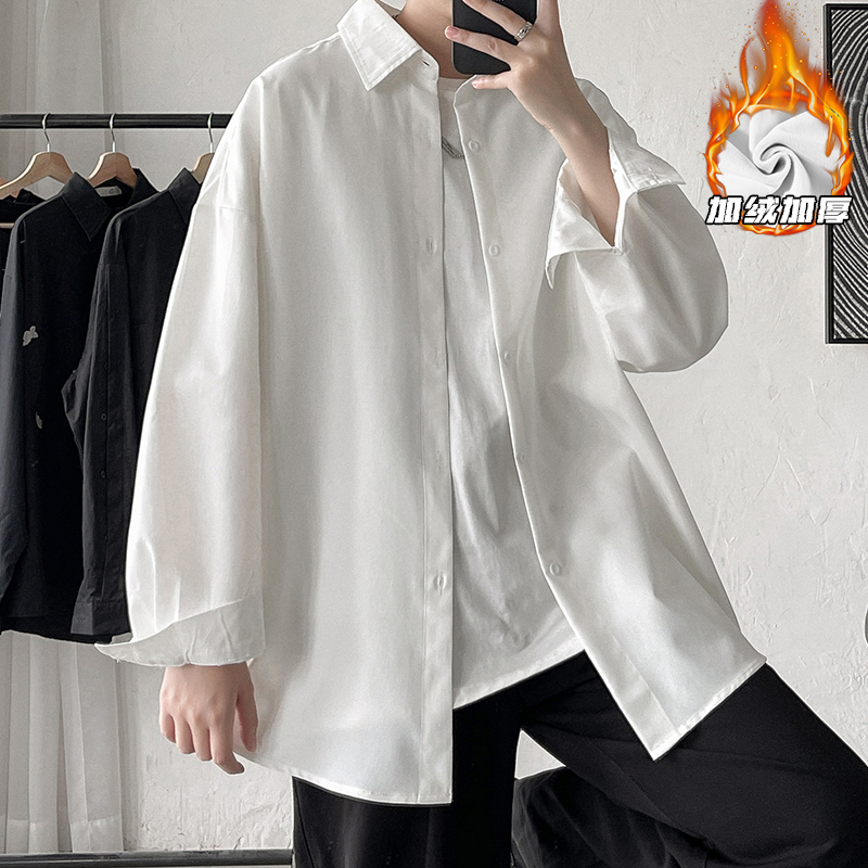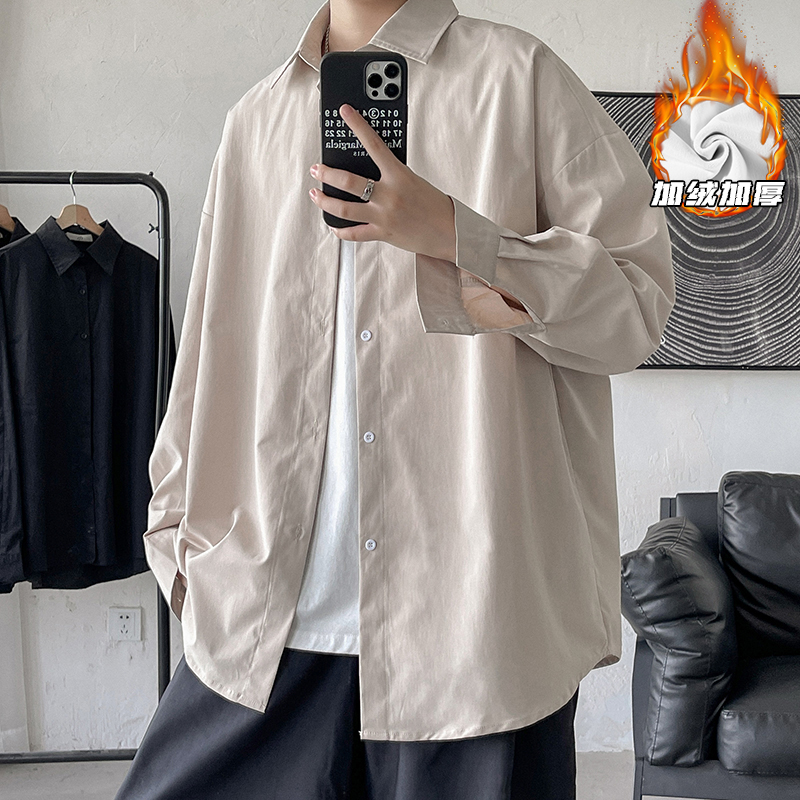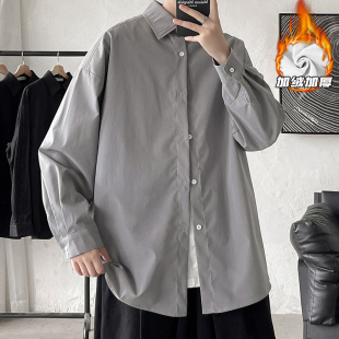 加绒加厚百搭高级感痞帅初中生 外套男春秋新款 青少年牛仔长袖 衬衫