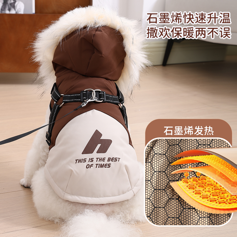 2025年新款 狗狗衣服泰迪比熊保暖棉衣中小型犬柴犬可牵引带帽棉服
