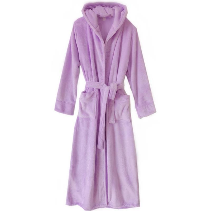 紫色戴帽加厚珊瑚绒浴袍1009c 秋冬季 秋冬睡袍女长款 到脚踝加长款