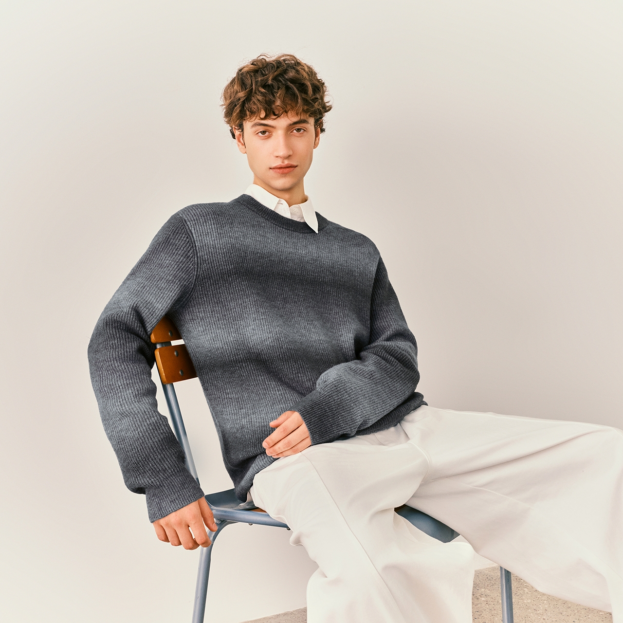 针织衫 利郎官方 男秋冬男装 商务男士 纯色圆领毛衣男 打底衫 纯棉
