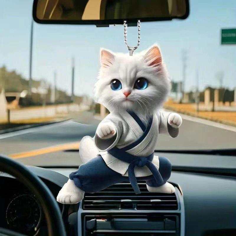 跨境新款 饰礼物 亚克力平面功夫猫咪汽车挂件背包挂饰钥匙挂链装